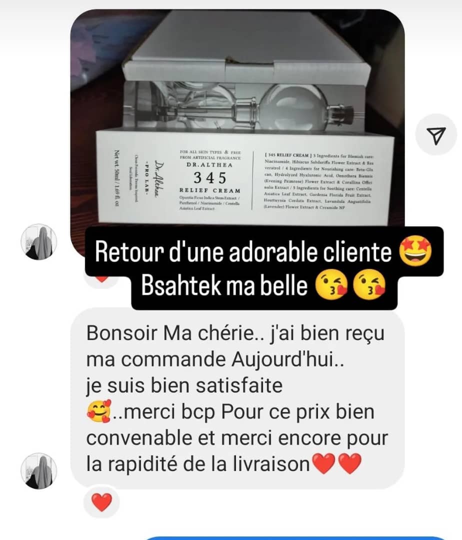 Bonsoir Ma chérie..J'ai bien reçu ma commande Aujourd'hui..je suis bien satisfaite..merci bcp Pour ce prix convenable et merci encore pour la rapidité de livraison